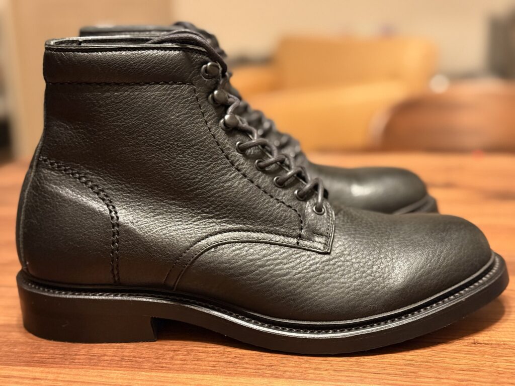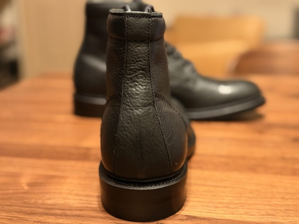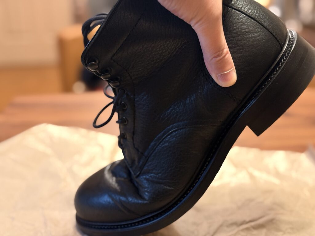 今回購入した「ディアスキン製ブーツ」は、どうやら山梨県にある害獣駆除等で処分された鹿を使ったディアスキン製品を販売しているサスティナブル企業「FORESENT」製。野生鹿の1枚革を使ったセミフォーマルブーツです。