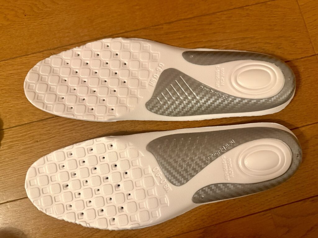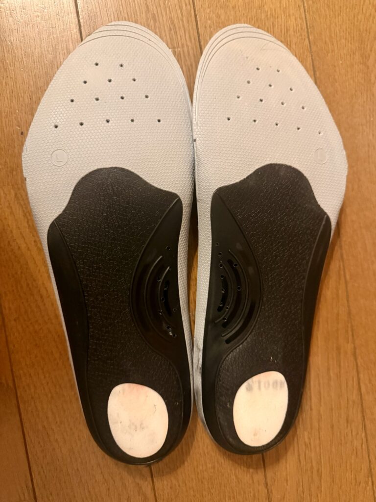 ただ、このインソール。買ってから気が付いたのですが、単独で使うというより、靴に元々あるインソールとセットで使うことを想定されているらしい。ただ、元々のインソールと組み合わせると、厚みがありすぎるので、今回は単独で使った際のレビューとしなります。